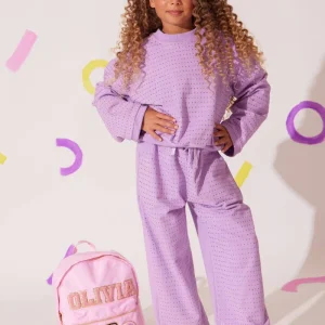 - A chic and sparkling lavender set adorned with delicate crystal detailing for an effortlessly stylish look.